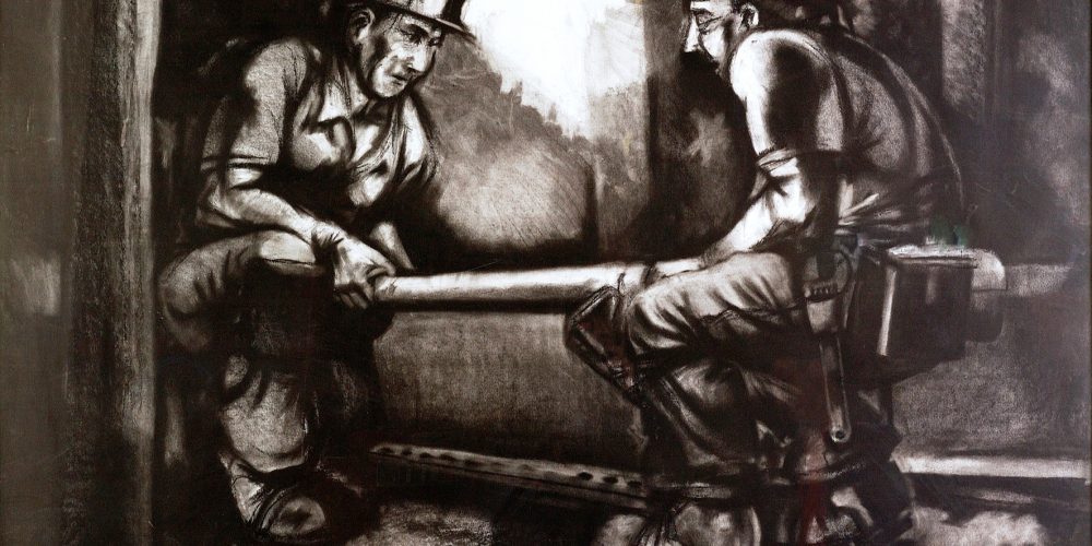 The 6 artists featured here all worked as miners and their work draws upon their first-hand mining experiences. Their artwork is varied, from linocuts to lithographs, oils to charcoal drawings but they all allow us to glimpse into their working world and mining communities.